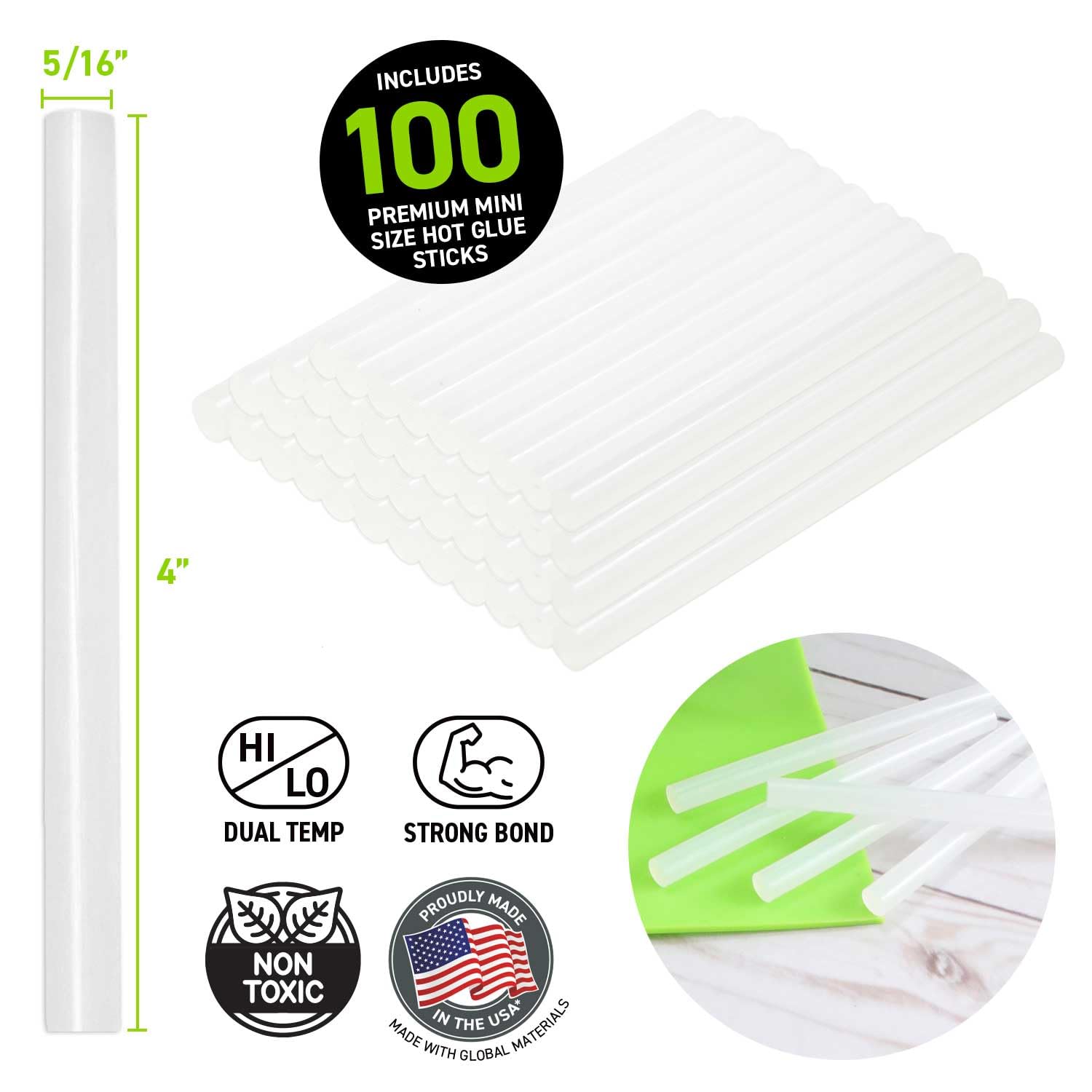• 100 MINI SIZE GLUE STICKS - Craft/DIY with confidence knowing that you have a large supply of high-quality Surebonder hot glue sticks in reserve.