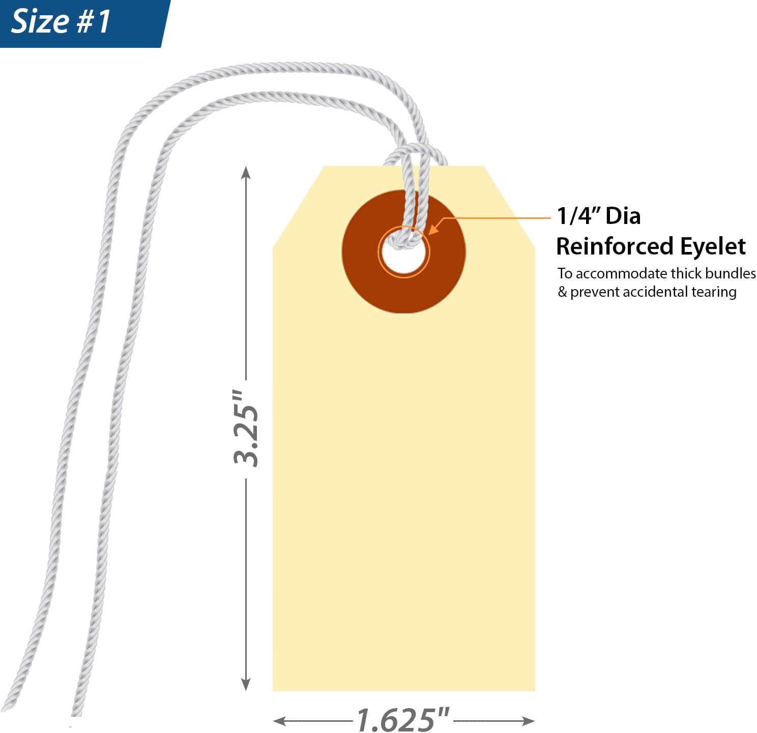 • TEAR RESISTANT: Tags include a reinforcing fiber patch for durability and stiffness. Eyelet diameter is 1/4 inch.