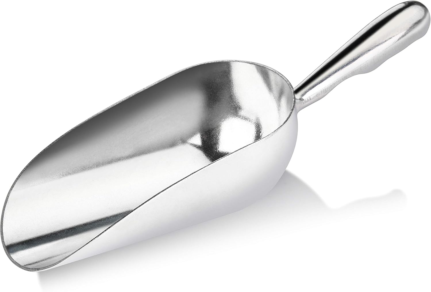 • Commercial-Grade Aluminum utility scoop great for ice, sugar, flour, popcorn, and candy.
