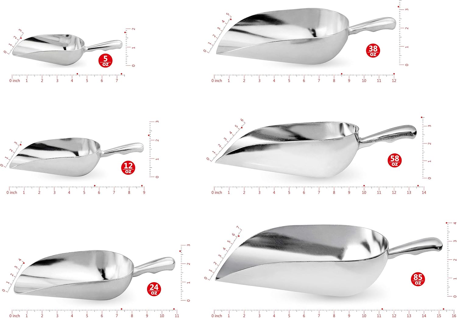 • Commercial-Grade Aluminum utility scoop great for ice, sugar, flour, popcorn, and candy.