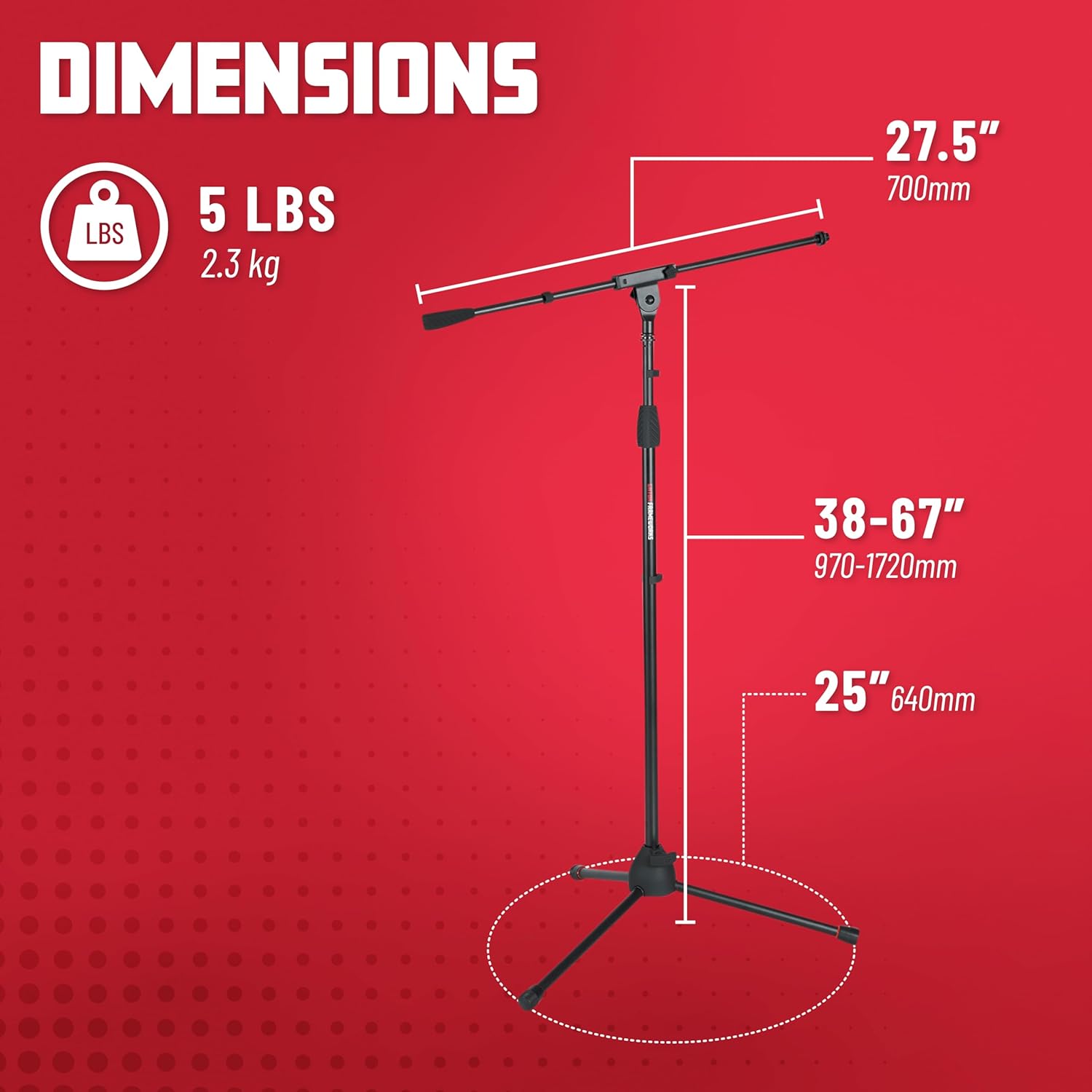 • Adjustable Boom Mic Stand: Ideal for live performances, studio recording, and broadcasting