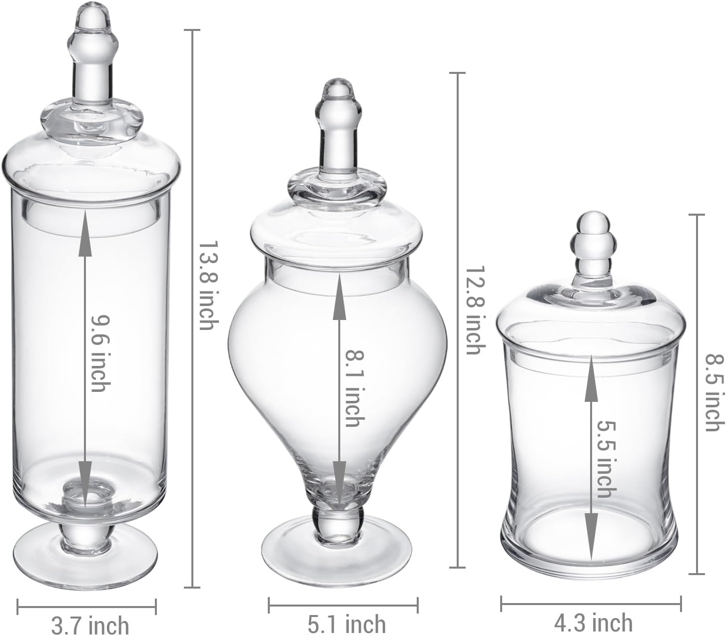 MyGift Clear Glass Apothecary Jars with Lid, Decorative Footed Vase, Candy Buffet Containers Set of 3