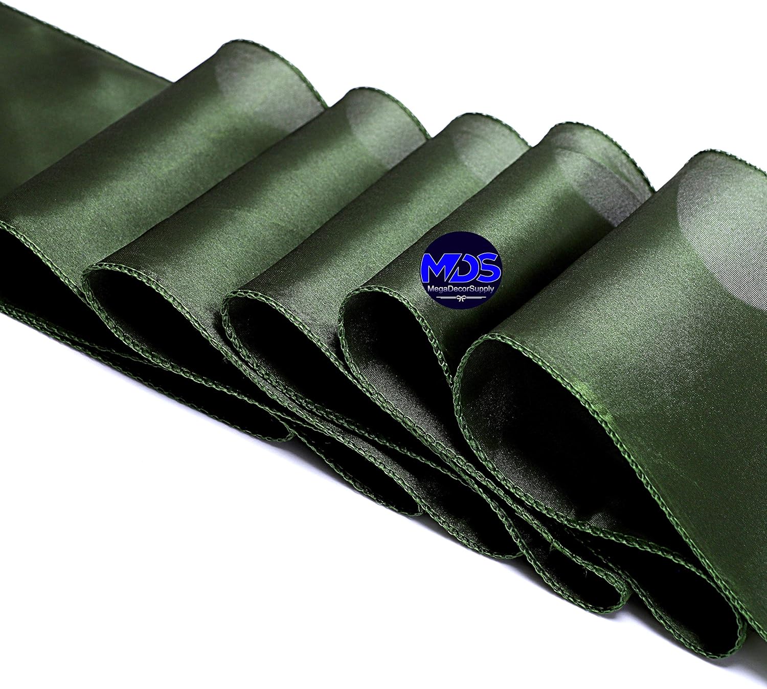 MDS Pack of 300 PCS Satin Chair Sashes Charmeuse Sateen Dining Chair Bows Ribbon Ties Back Sash for Wedding Party Birthday Home Hotel Restaurant Banquet Decoration (7 x 108 Inch, Olive Green)