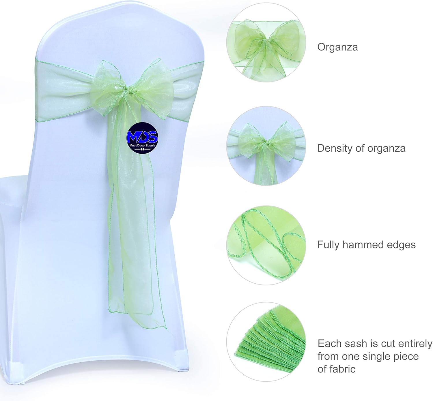 MDS Pack of 200 PCS Organza Chair Sashes Wider Dining Chair Bows Ribbon Tie Back for Wedding Party Birthday Bridal Shower Reception Event Banquet Home Chair Cover Decoration - Apple Green
