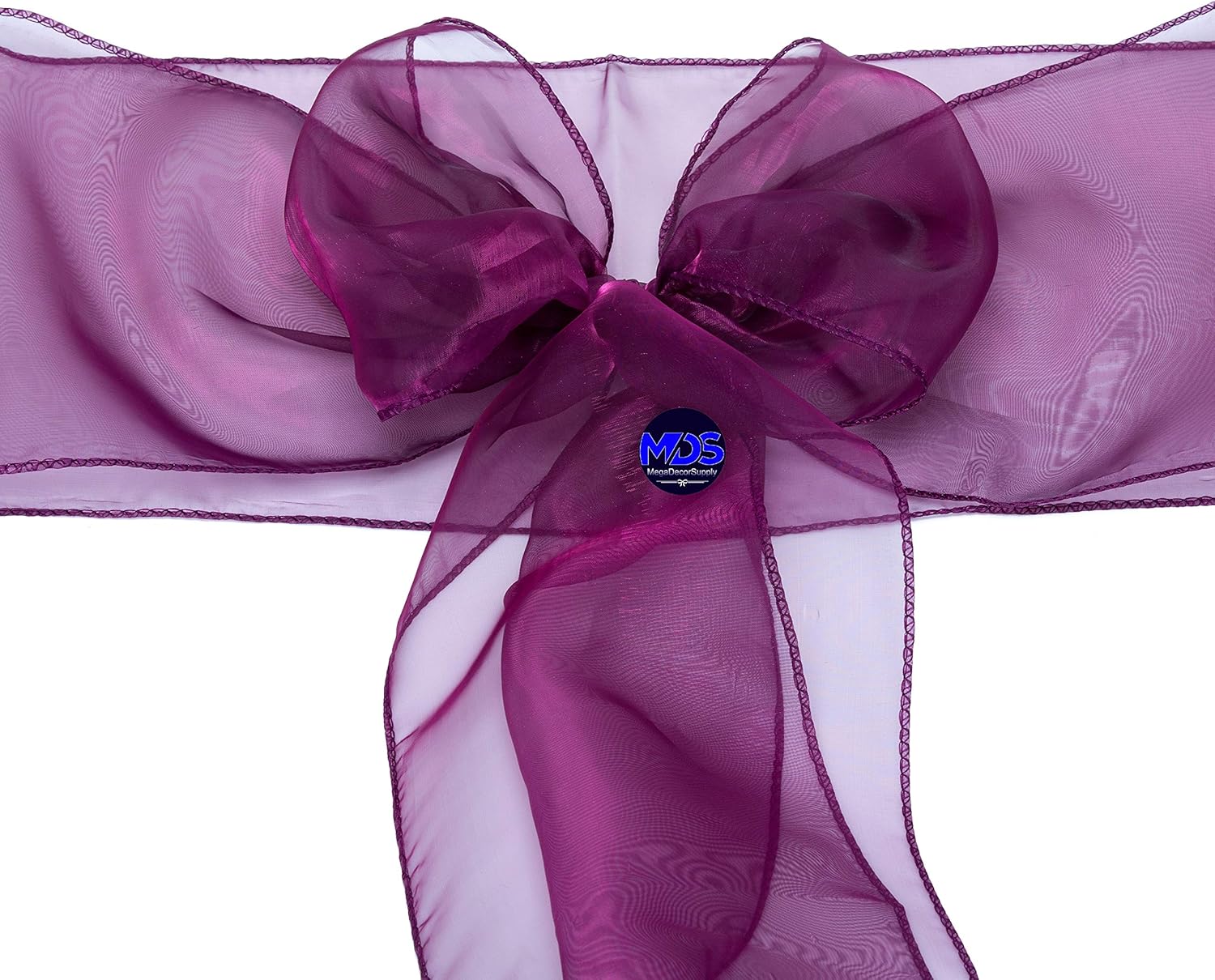 MDS Pack of 150 PCS Organza Chair Sashes Wider Dining Chair Bows Ribbon Tie Back for Wedding Party Birthday Bridal Shower Reception Event Banquet Home Chair Cover Decoration - Eggplant