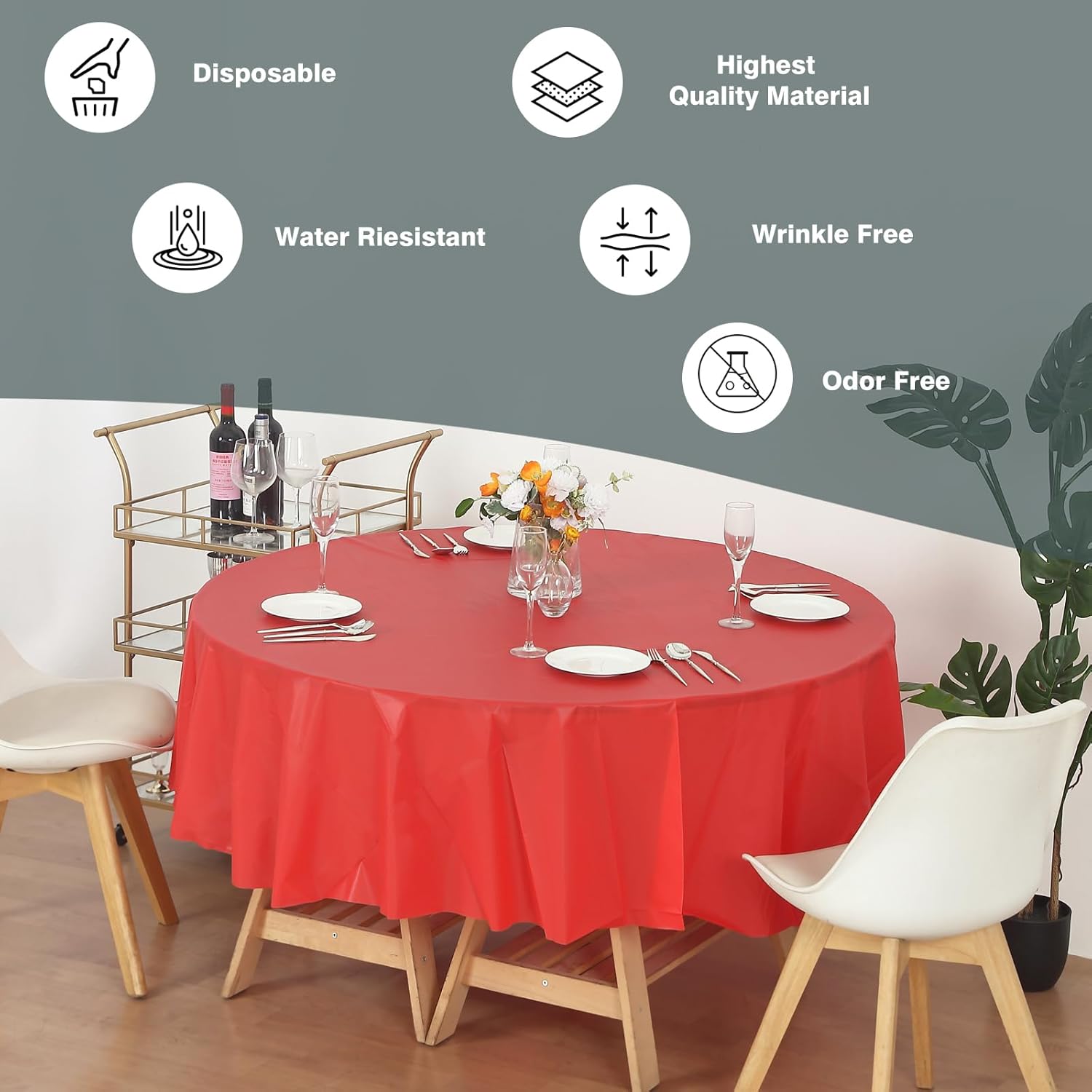 • Multiple purpose: Great plastic tablecloth for home, restaurant, parties, weddings, outdoor events, catering, theme party and any other special events. It can also be used to cover up the floors to avoid any spills or any other small particles.