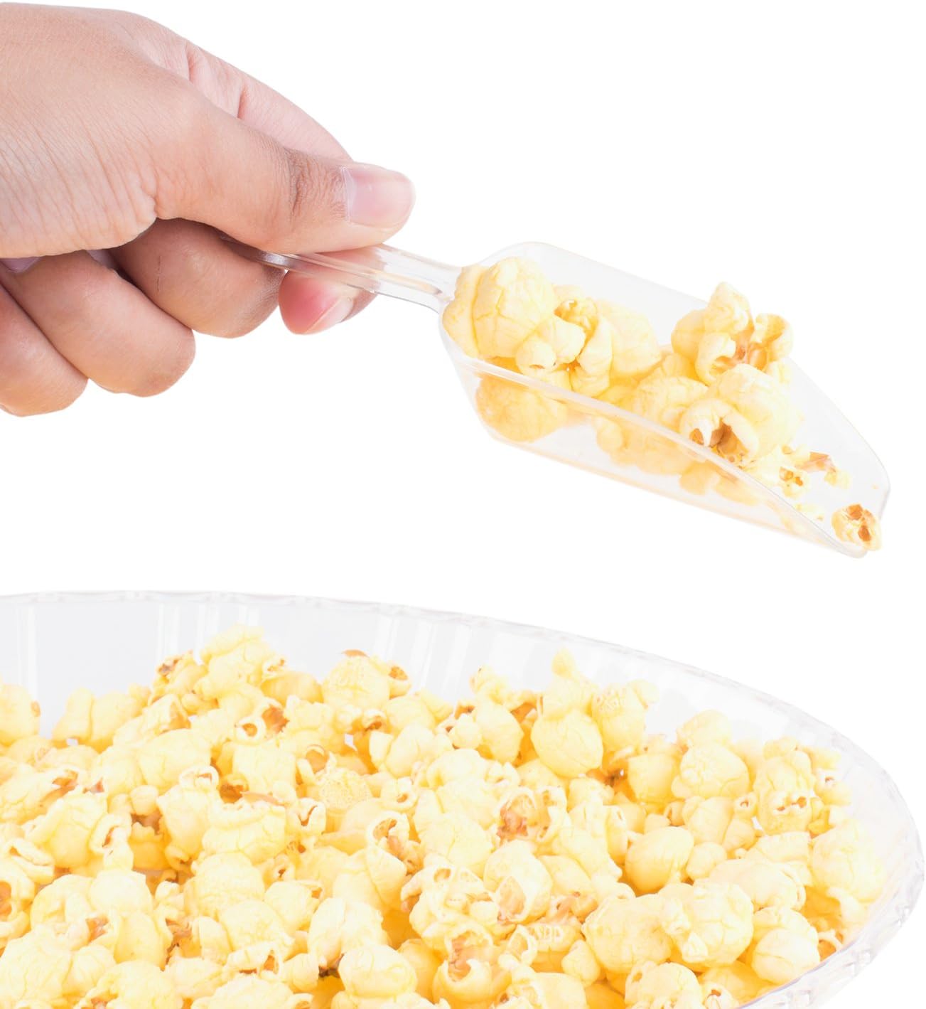 • Let your guests scoop out their favorite candies and treats with these attractive clear plastic candy scoops. An essential for a food stand, a diner, as restaurant supplies and even a school or carnival concession stand. Clear plastic containers for all your food service and sampling needs.