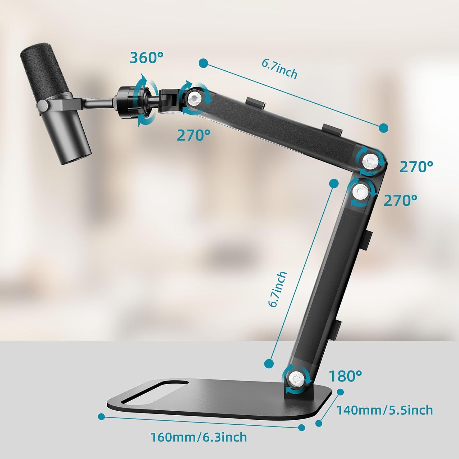 • Compact & Portable Design: With a compact base measuring 6.3 x 5.5inches and a foldable microphone arm, this stand is ideal for tight spaces. Lightweight and portable, it’s easy to carry for creators on the go.