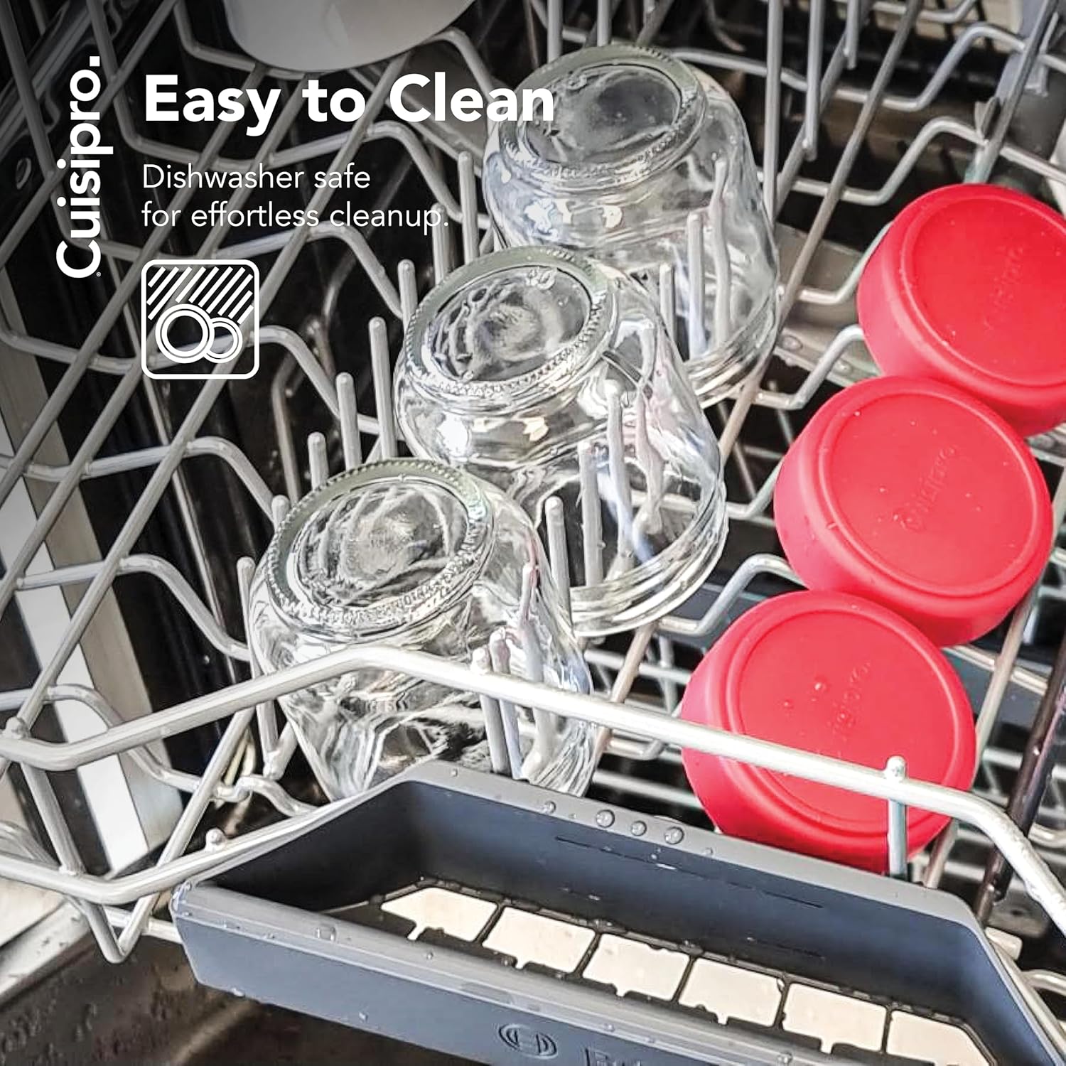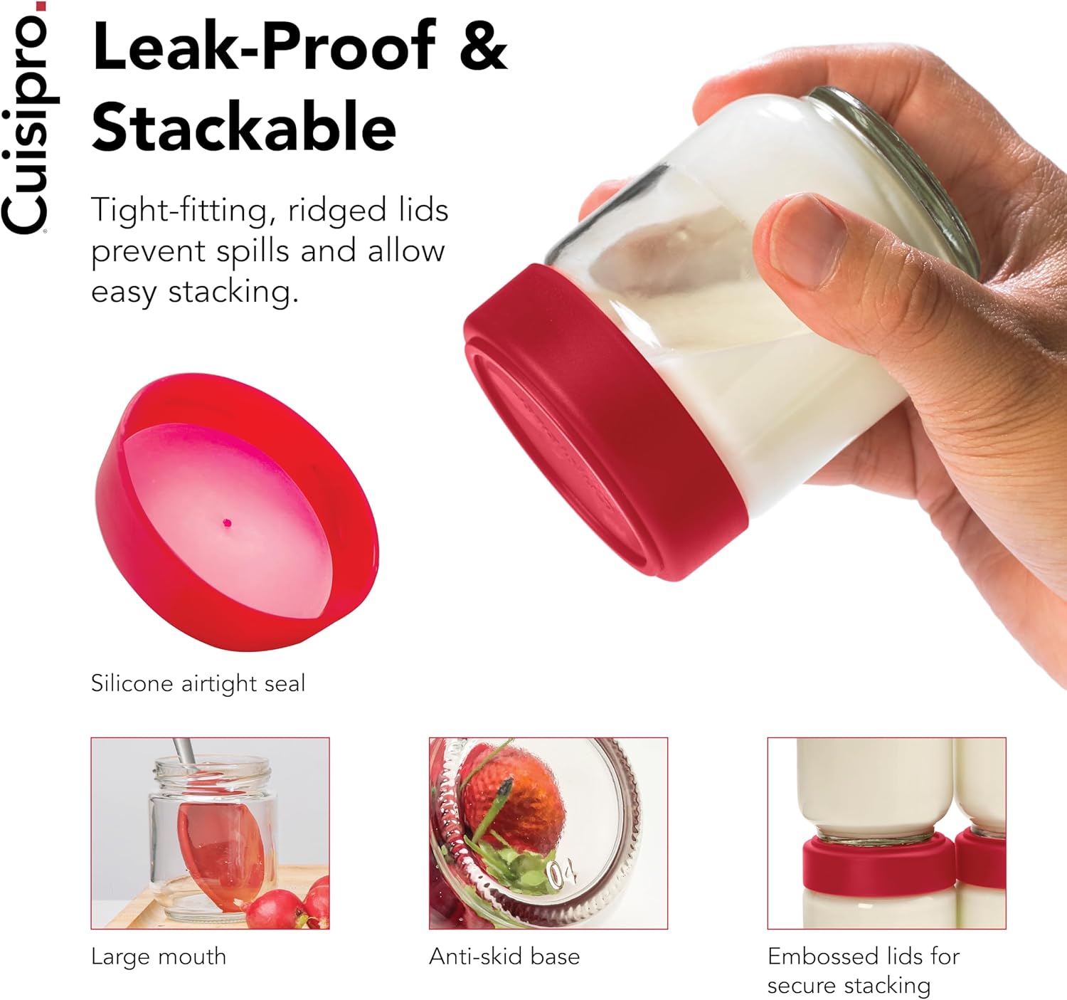 Cuisipro Jars with Lids, 6 Oz Glass Jars with Airtight Lid Wide Mouth, 4 Pack, Canning Jars for Liquid, Glass Container for Yogurt, Spice, Red