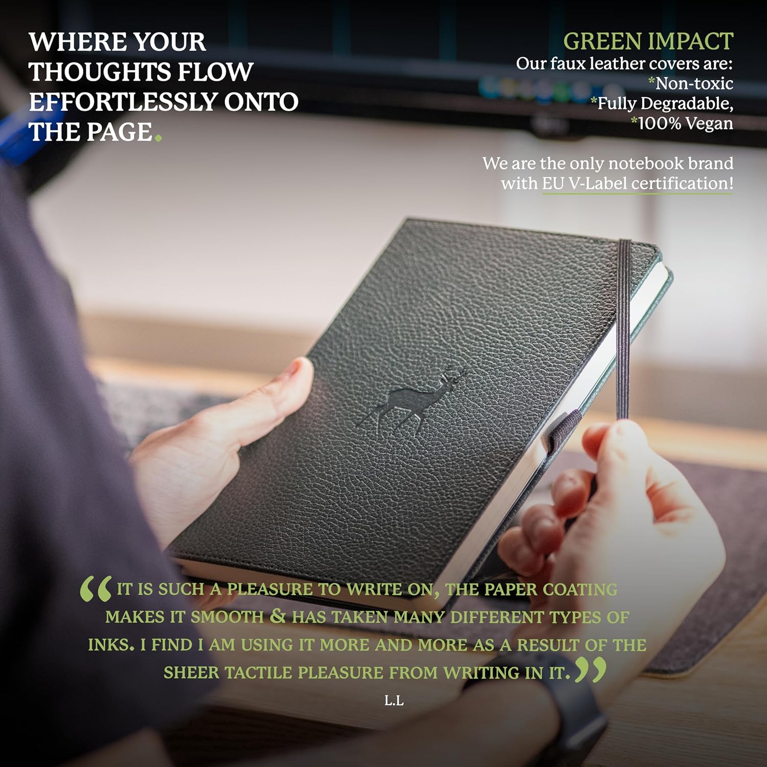 • HIGHEST-QUALITY WRITING PAPER: Dingbats Green Deer Medium A5 Notebook Journal has 192 pages-96 sheets of no bleed, smooth writing, Cream 100gsm, acid-free fountain-pen friendly, perforated plain paper in a flat lay design
