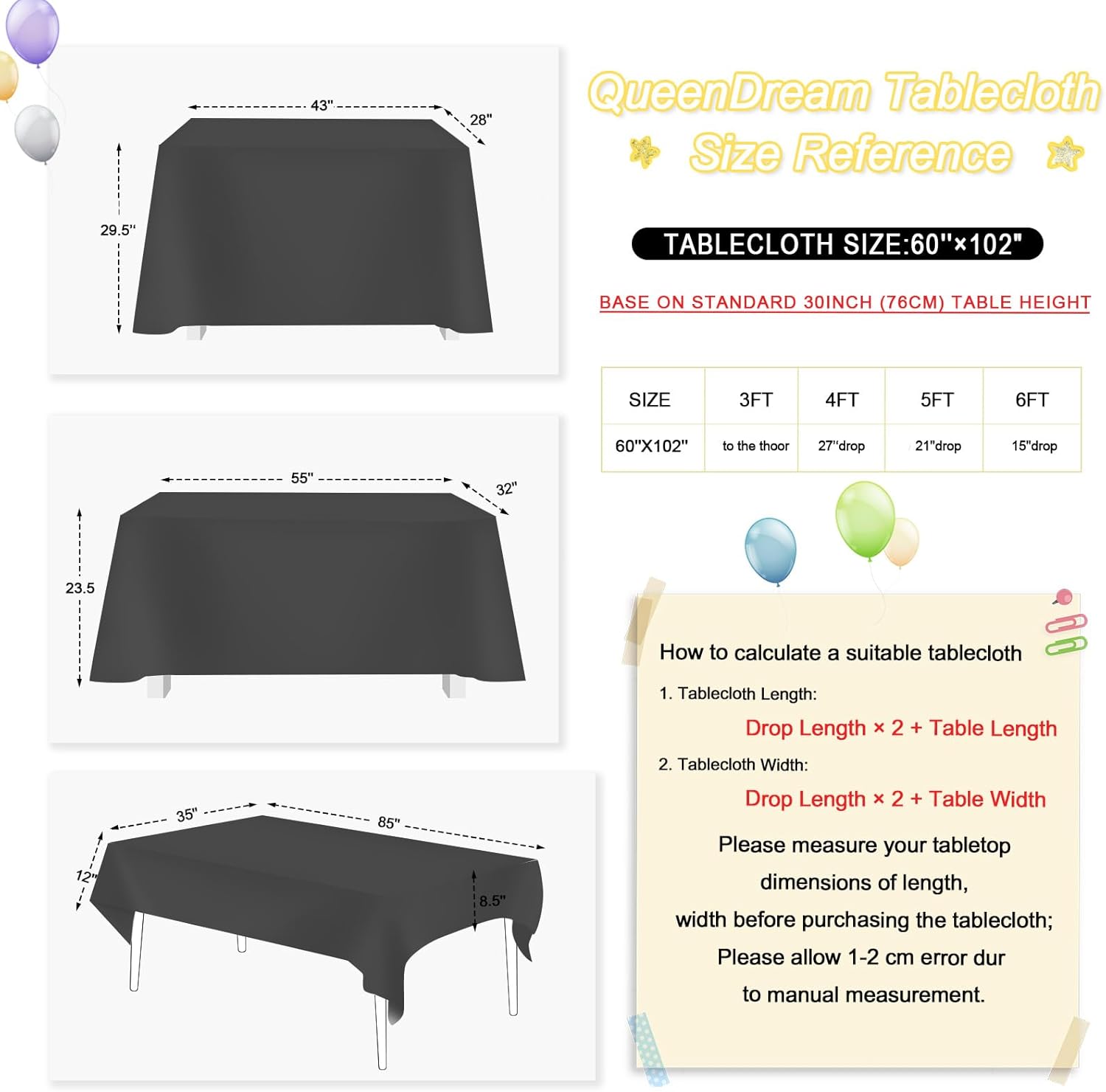 • Black Sequin Tablecloth Size:: 1 packs of black sequin tablecloth, the size of the black tablecloth is 60 W by 102 ​L inch. It's long enough to fit any round, rectangle or square table.