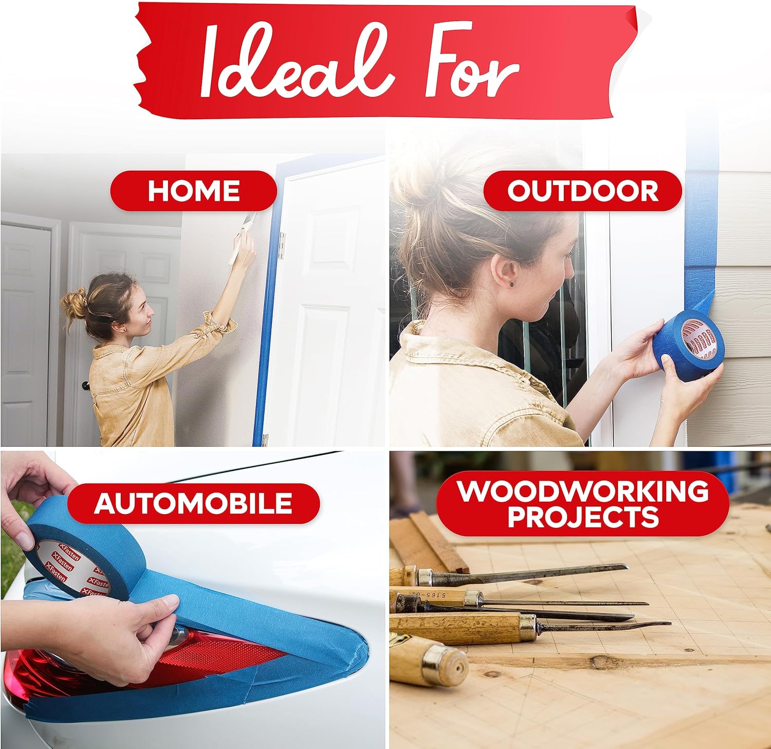 • Blue Painters Tape with Anti-Bleeding Properties capable of delivering Sharp Lines and Narrow Edges which is Ideal for both Home and Automobile Painting.