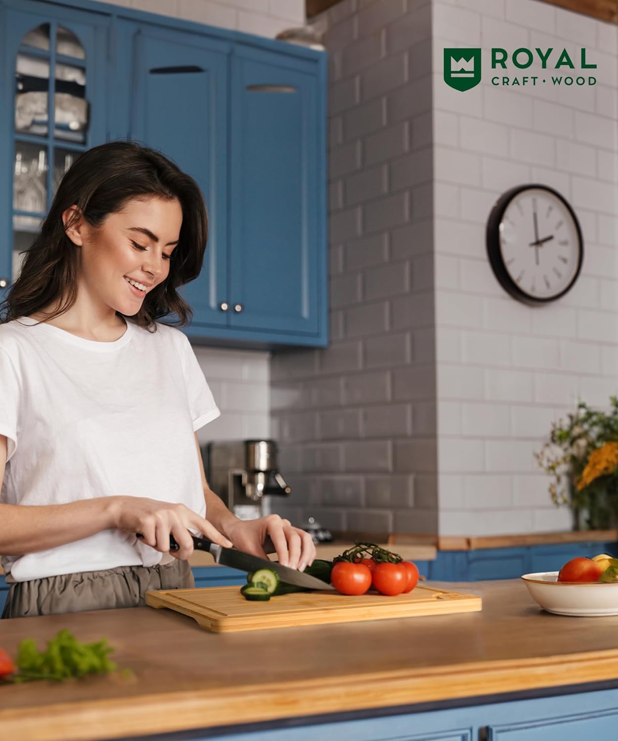 ROYAL CRAFT WOOD Extra Large Cutting Boards for Kitchen Meal Prep & Serving-Bamboo Wood Cutting Board with Deep Juice Groove - Charcuterie & Chopping Butcher Block for Meat - Gadgets Gift (XL 18x12")