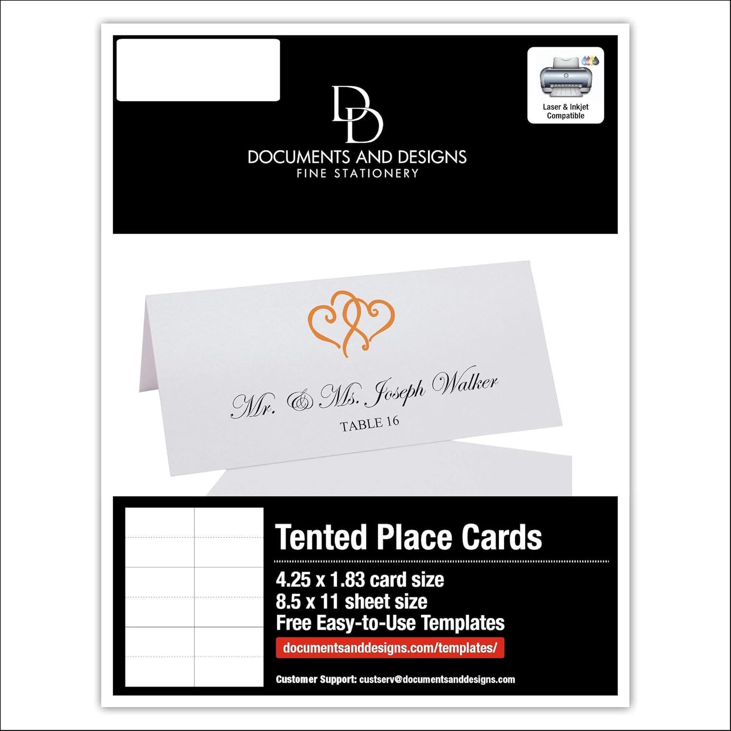 • Includes (10) 8.5x11 Sheets. (60) Individual Place Cards. Orange