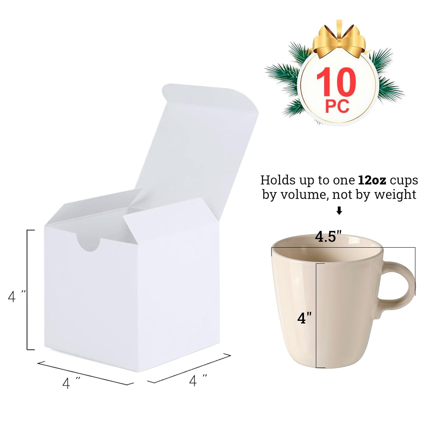 MESHA Small White Gift Boxes 4x4x4'' 10 Pack, Gift Boxes with Lids for Bridesmaid Gifts, Groomsmen, Godmother, Wedding & Party Favor, Bridal Shower, Cupcake Boxes