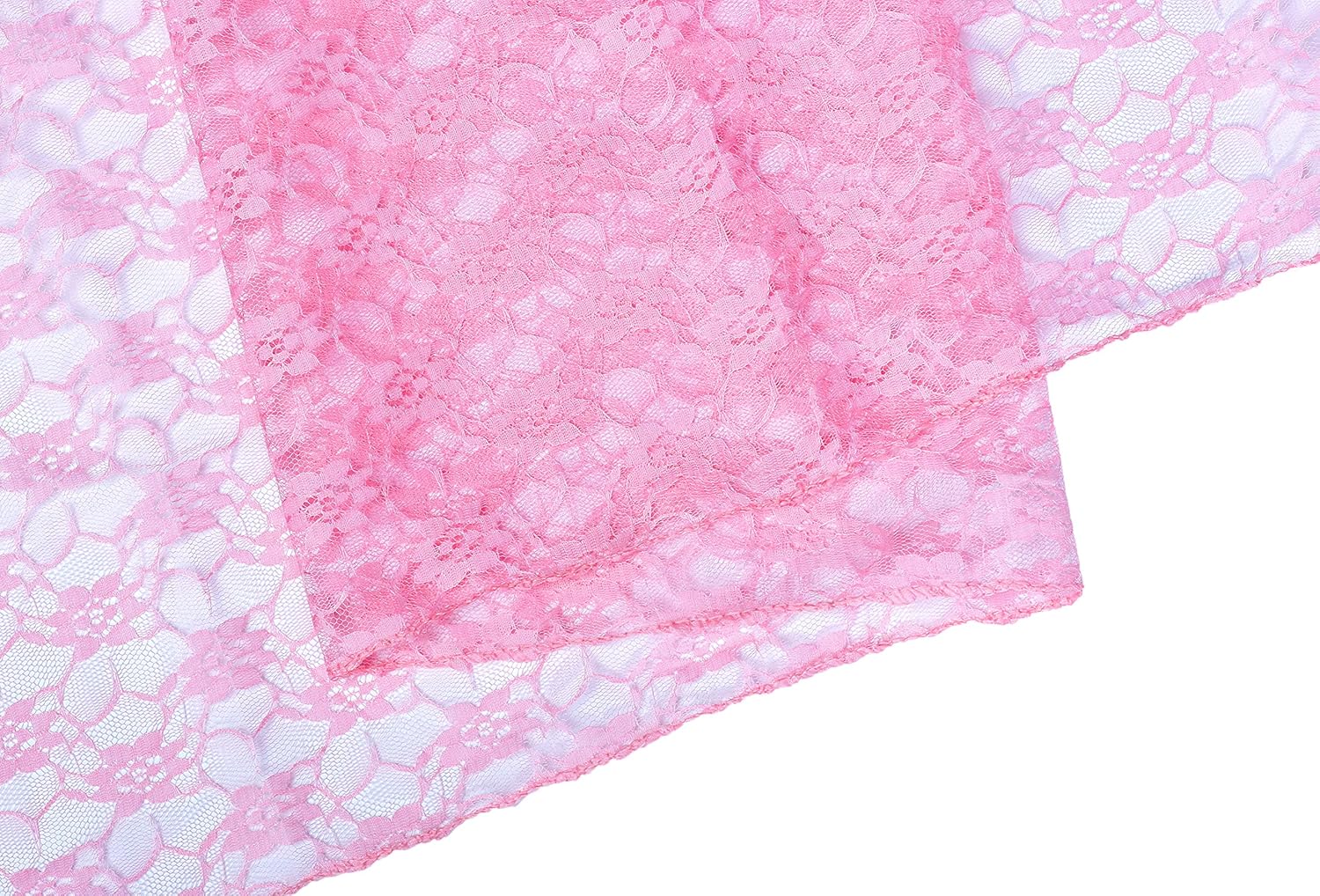 MDS Pack of 15 Wedding 12 x 108 inches Lace Table Runner for Wedding, Decorations for Birthday Parties, Banquets, Graduations, Engagements, and Runners fit Rectangle, Round Table- Pink