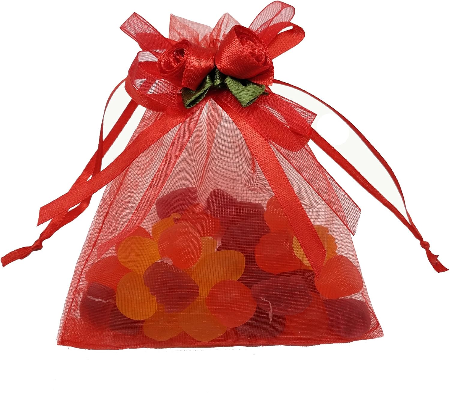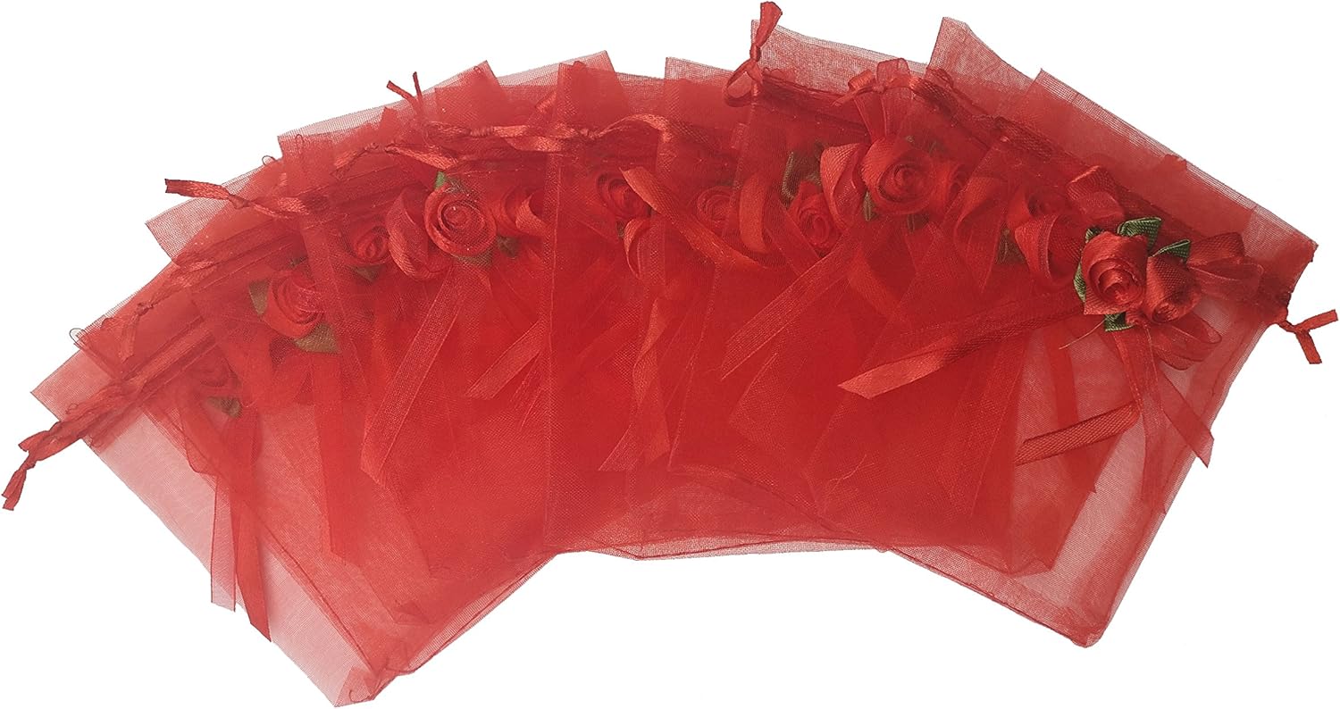 Ankirol 50pcs Sheer Organza Favor Bags For Wedding 3.8x4.8'' Gift Bags Samples Display Drawstring Rose Pouches (hot red)