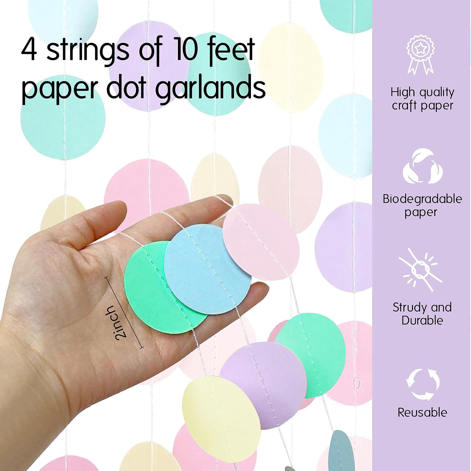 Chloe Elizabeth Circle Dots Paper Party Garland Streamer Backdrop (4-Pack, 10 Feet Per Garland, 40 Feet Total) - Rainbow Pastel