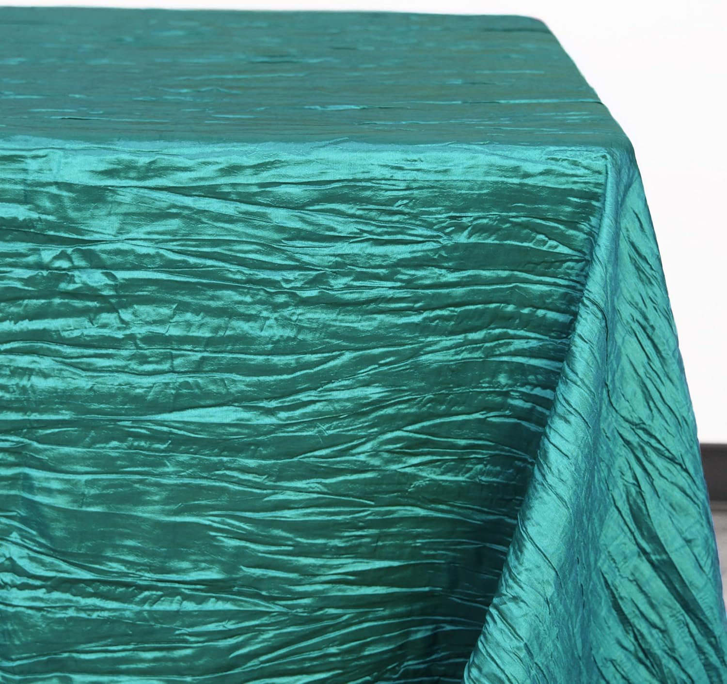 • Transform your event with our 90 x 132 inch teal crinkle taffeta tablecloth, designed to add a modern and elegant touch to wedding receptions and special occasions.