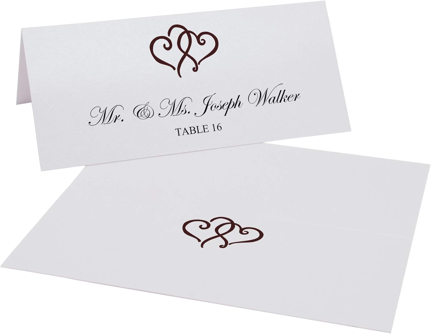 Linked Hearts Printable Place Cards, Chocolate (Choose Color), Set of 60 (10 Sheets), Laser & Inkjet Printers - Wedding, Party, Dinner, and Special Events - Made in the USA