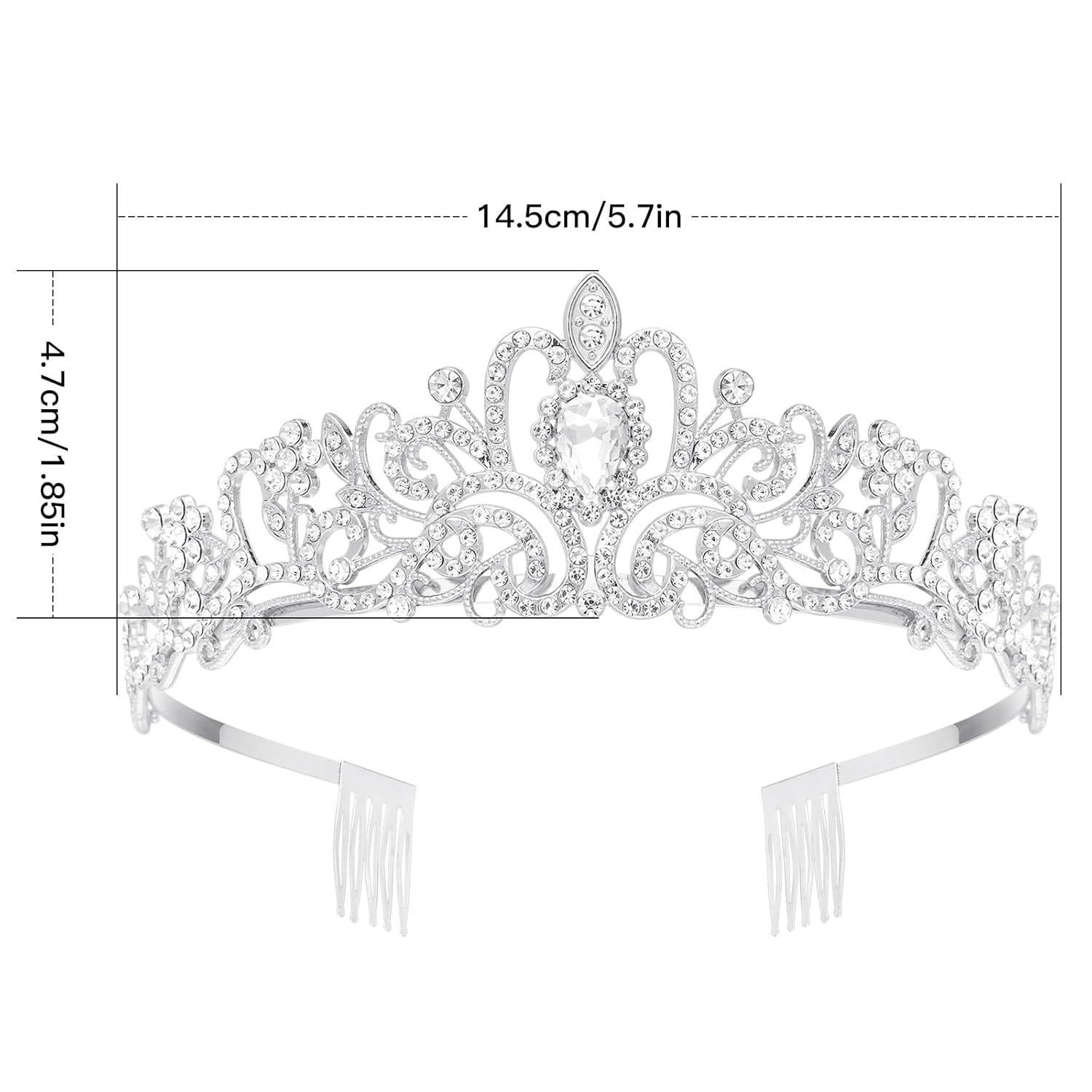• ♛Parameters and Features:Crown headband for women is approximately 1.85 inches in height, 5.7 inches in diameter. The end of the crown is designed with two small combs to prevent it from falling off, solving your worries.