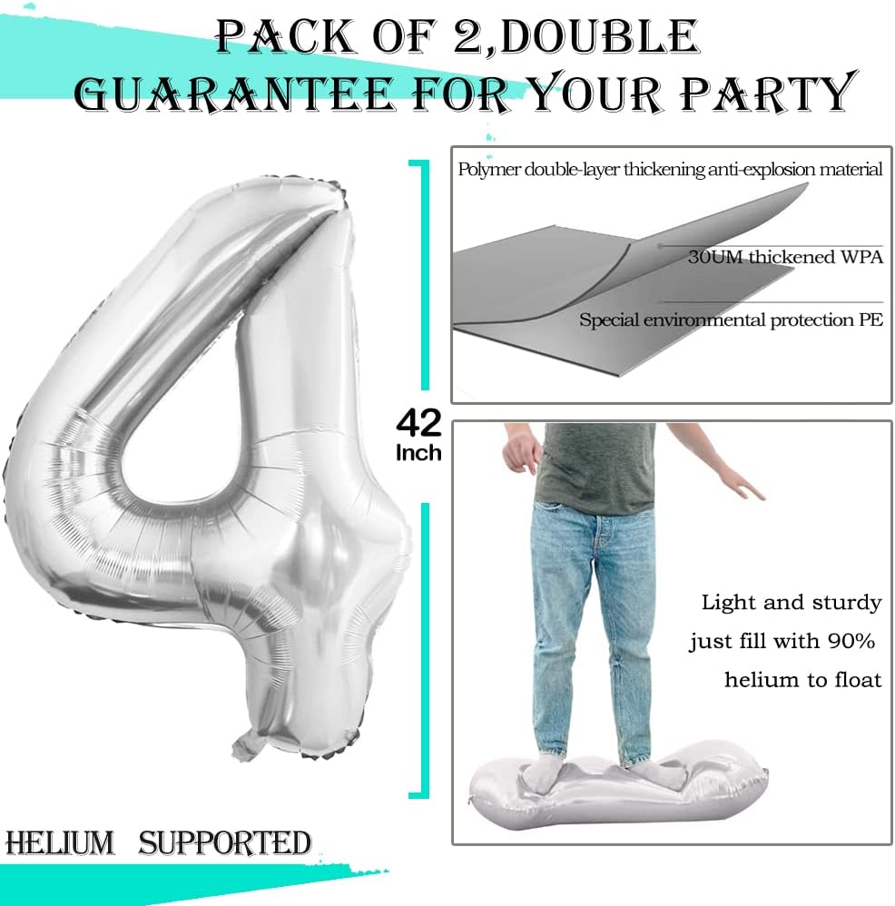 GOER Silver Foil Balloons Number 4,Huge Number Balloons for 4th Birthday Party Supplies Anniversary Decorations(3 pcs,42 inch,32 inc,16inch)