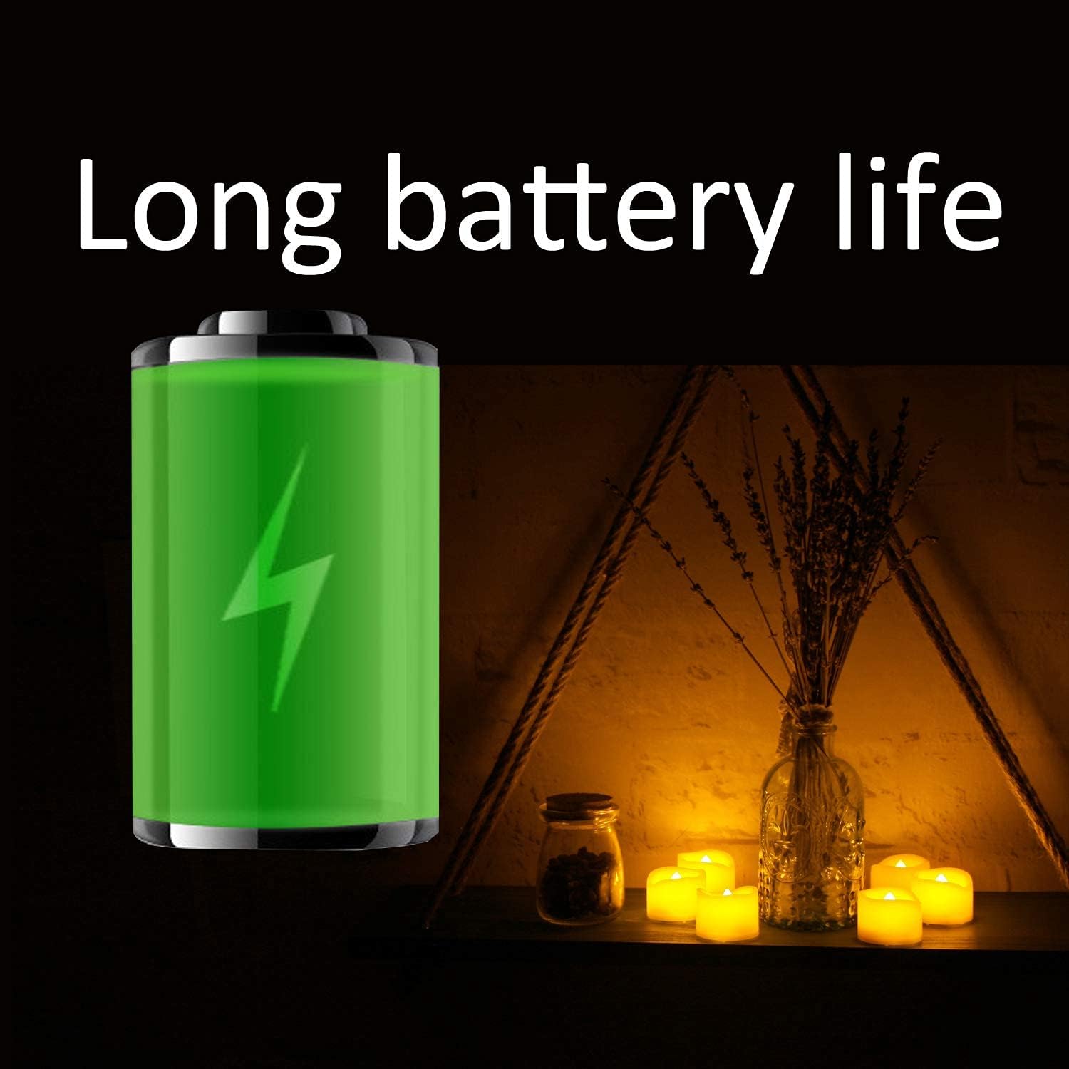 • Long lasting battery candles. 200 glowing hours on one CR2032 button cell is among the longest battery life in the market. With the energy saving technology, the LED tealight candles give off bright light on minimum battery consumption.