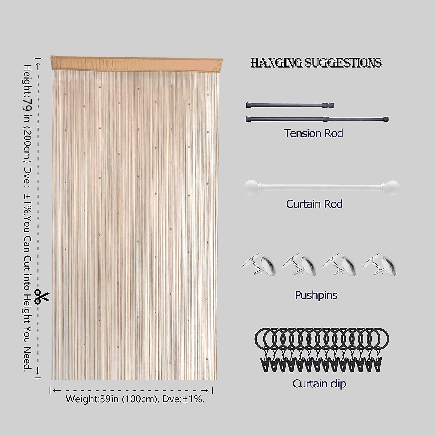 • The door curtains hang beautifully and let light in,meanwhile keep privacy,look pretty and delicate.If you need the strings to be dense,we suggest buy 2 or more.
