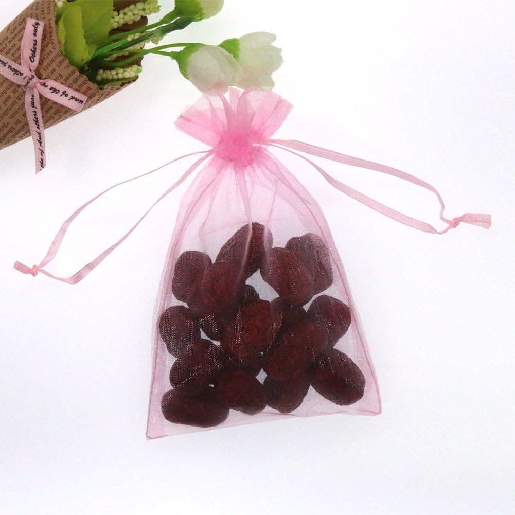 Wudygirl 100pcs Sheer Pink 5''X7 Organza Bags with Drawstring Jewelry Lipstick Pouches Baby Shower Party Wedding Favors Chocolate Candy Bags (Pink 5x7)