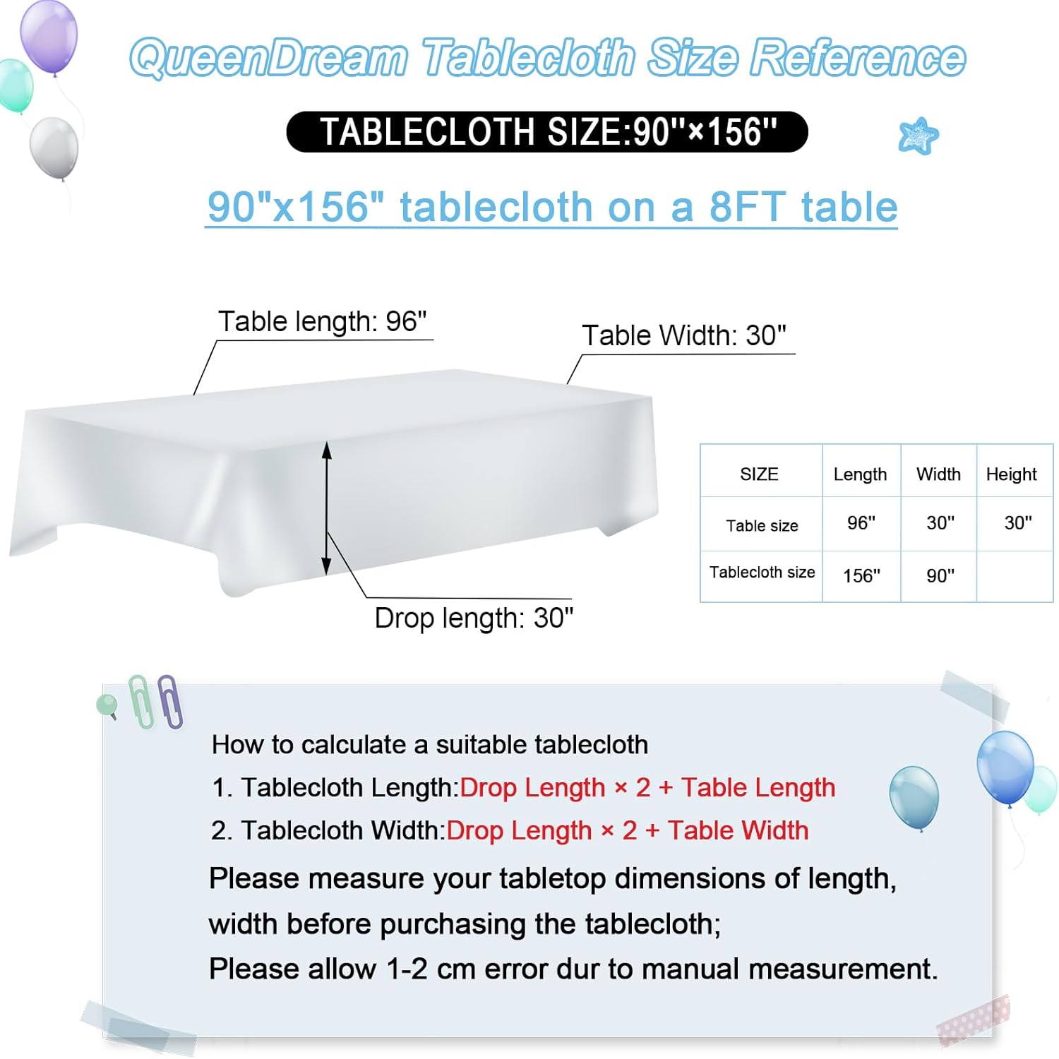 • Silver Sequin Tablecloth Size: 1 packs of Silver sequin tablecloth, the size of the Silver tablecloth is 90 W by 156 ​L inch. It's long enough to fit any round, rectangle or square table.