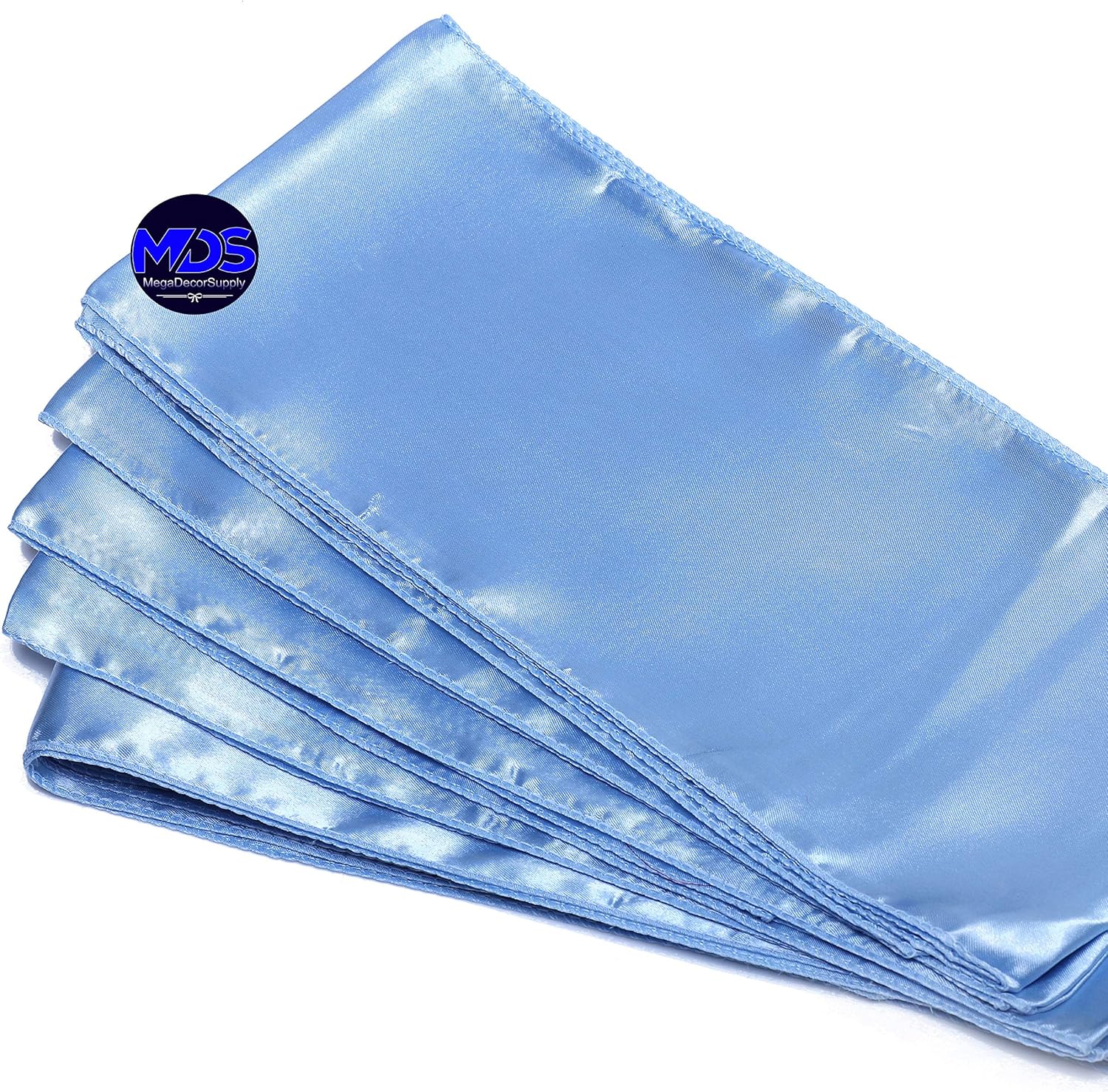 MDS Pack of 150 PCS Satin Chair Sashes Charmeuse Sateen Dining Chair Bows Ribbon Ties Back Sash for Wedding Party Birthday Home Hotel Restaurant Banquet Decoration (7 x 108 Inch, Baby Blue)