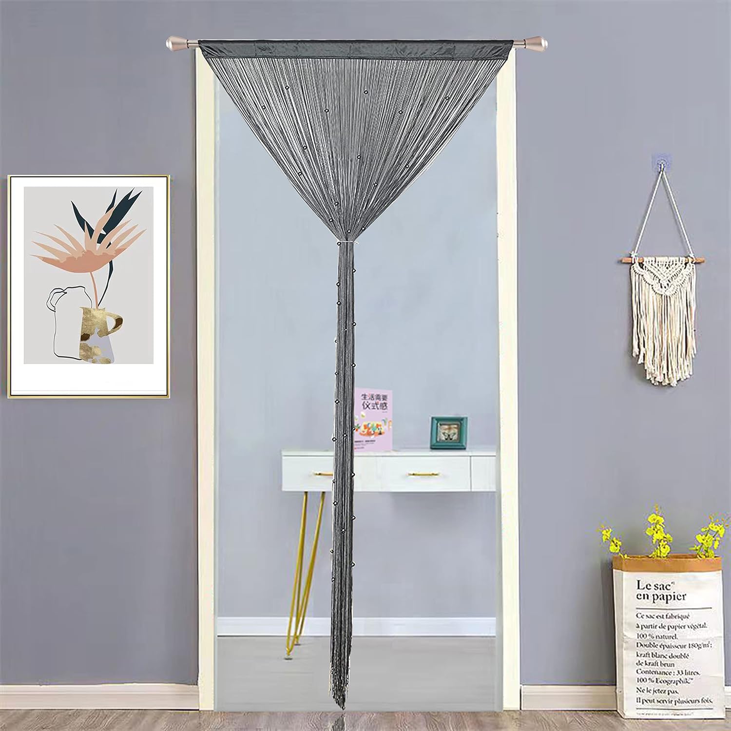 Beaded Doorway Curtain Door Beads Dense String Curtains Fringe Hippie Perfect for Wall Hanging Decor Room Divider Privacy Doors Window Closet Doorways Decorations (100x280cm,Grey)