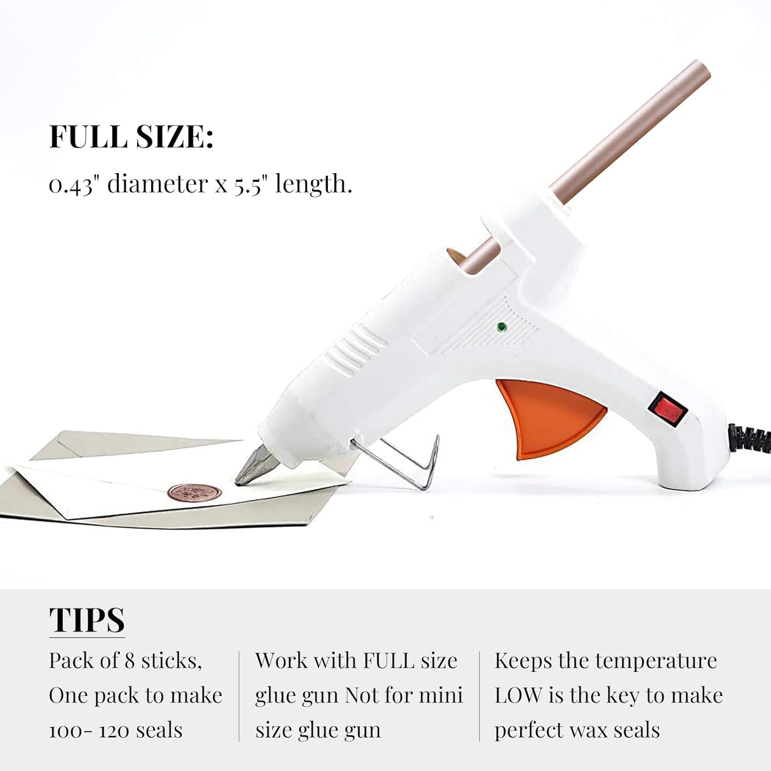 • PACKAGE INCLUDE - Pack of 8 sticks. Each stick can approx. make 12-15 seals. One pack to make 100- 120 seals. Size: 0.43” diameter x 5.5” length.