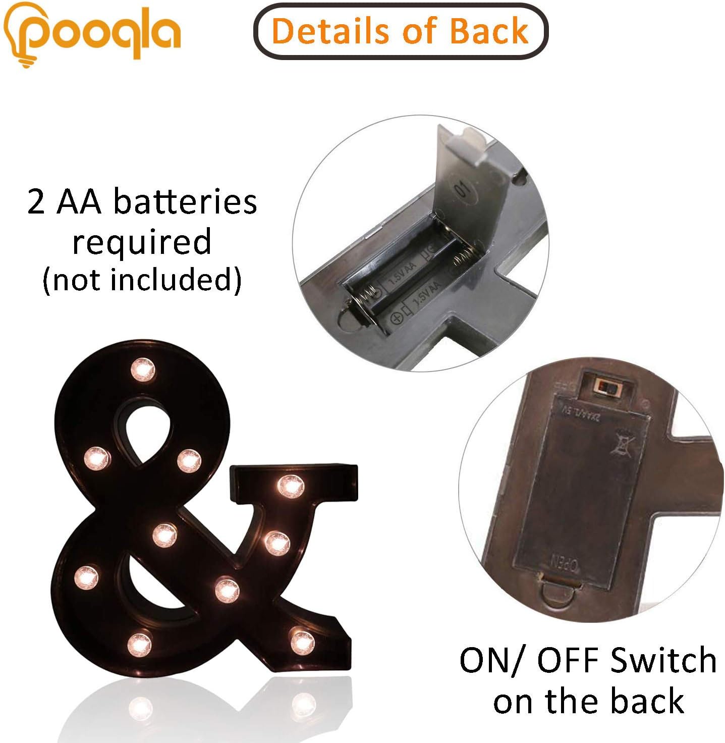 Pooqla LED Illuminated Letter Marquee Ampersand Sign - 8.86 inches High Plastic Ampersand with Lights for Home Decoration & Party