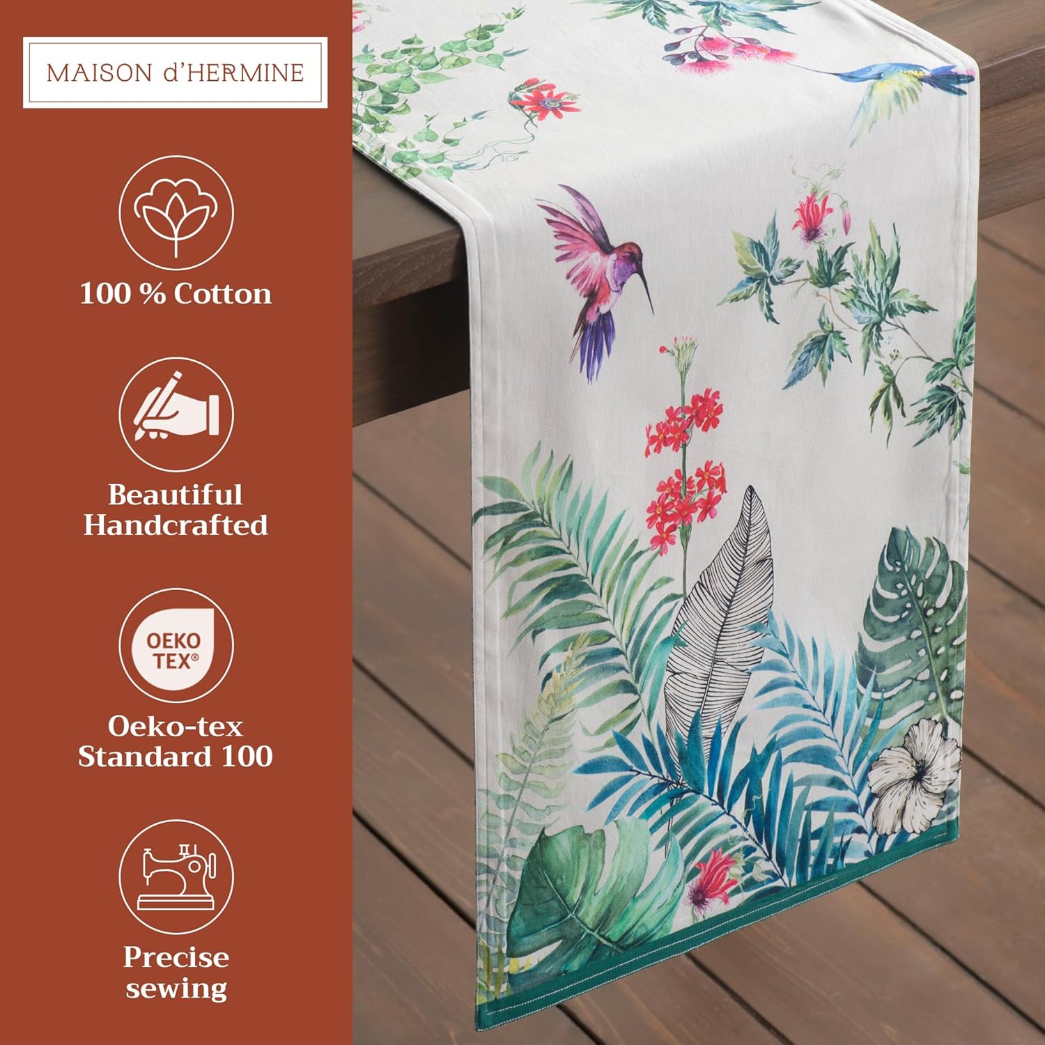 Maison d' Hermine Table Runner 100% Cotton Double Layer Table Runners 108 inches Long Decorative for Kitchen Dining Party Baby Shower Wedding Bridal Shower Spring Summer (Tropiques, 14.50" x 108")