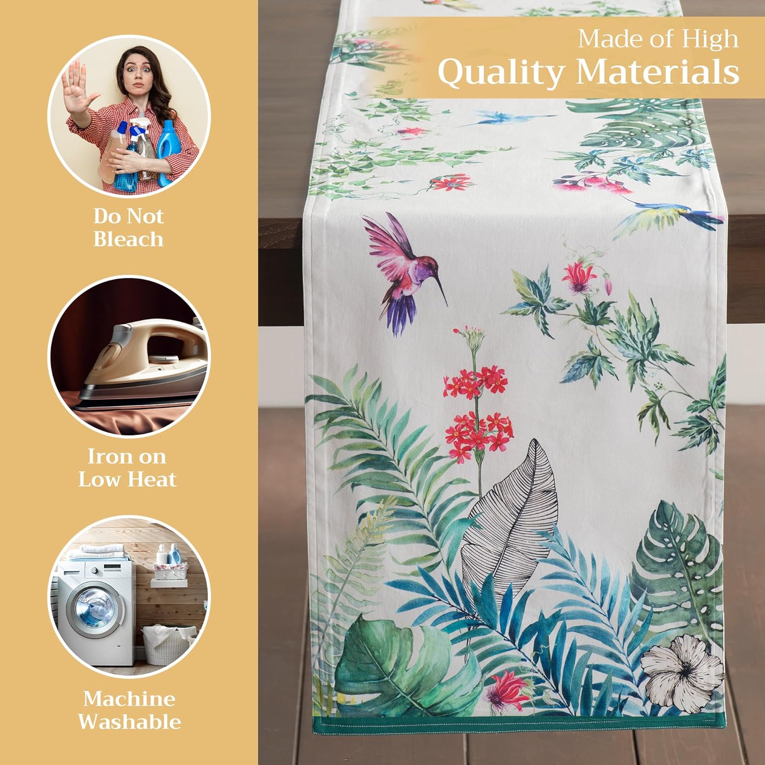 • Easy care & maintenance: Crafted from 100% cotton, this table runner is machine washable with like colors, do not bleach. Tumble dry on low and warm iron if needed. Durable and easy to maintain for everyday or seasonal use.