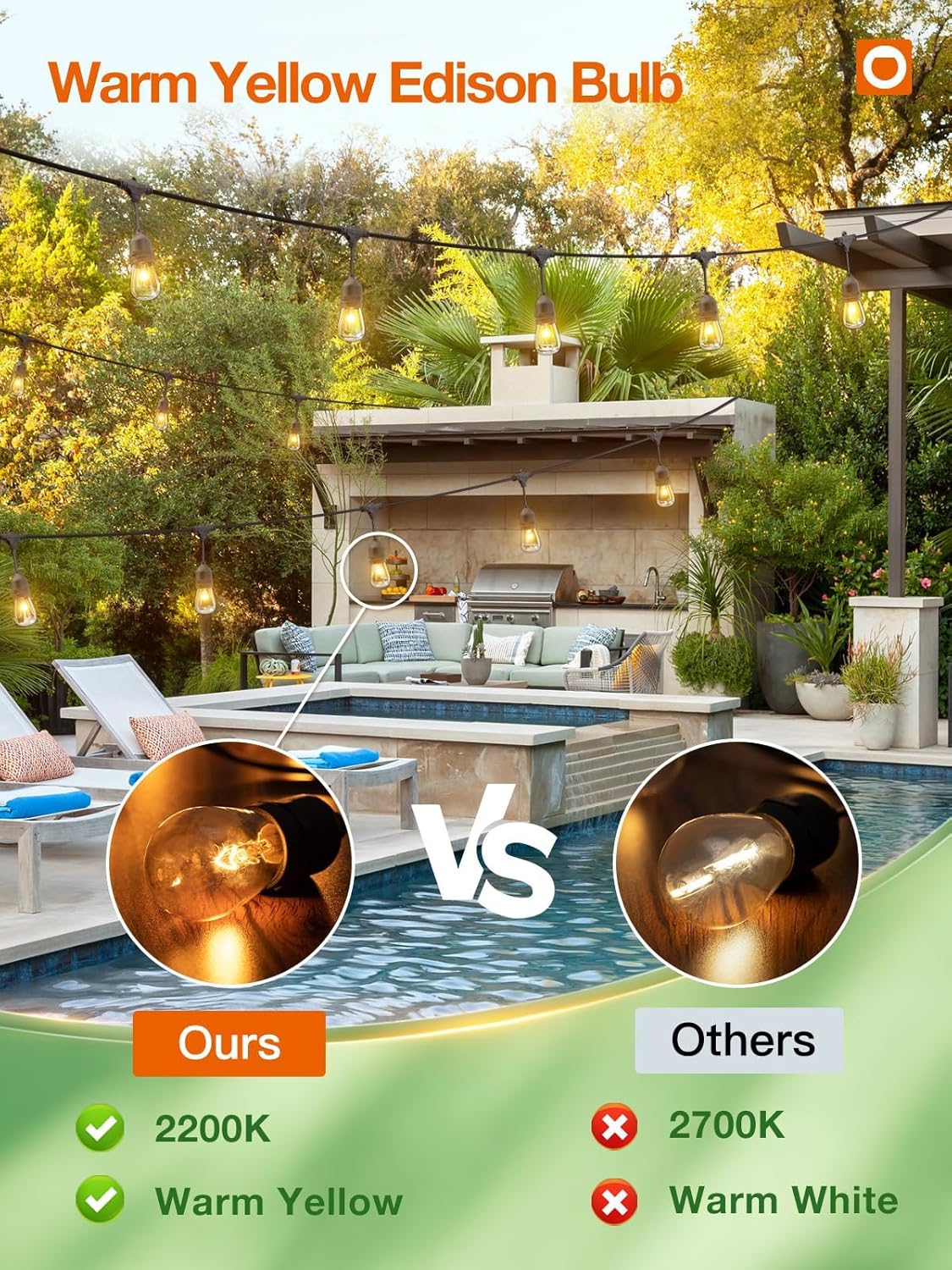 • [Dimmer Compatible to Set The Right Mood] For greater mood lighting flexibility and a more soft glow, a dimmer switch(not included) to create the ideal atmosphere for a birthday party, family reunion, or wedding reception. It adds flair to bistro deck porch patio garden backyard terrace pergola café restaurant malls for wedding BBQ party banquets, also suitable for tree-lighting