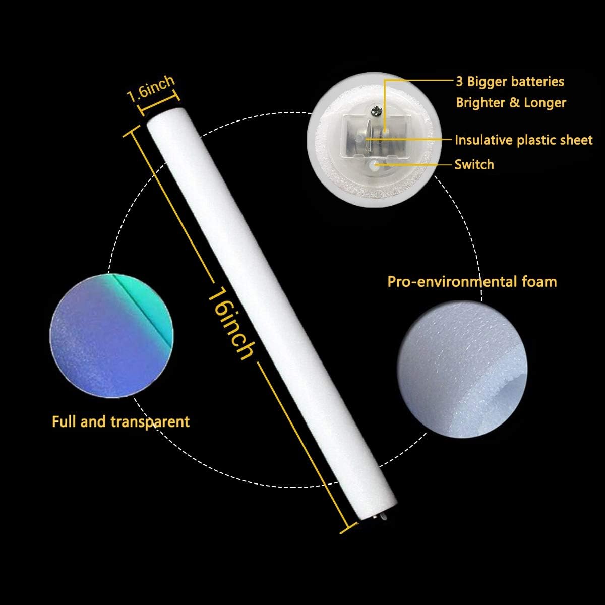 • Widely Applicable Occasions: The light up foam sticks are widely applicable to various occasions such as birthday parties; weddings; concerts; clubs; sporting events; theme park; nightlife; raves and any other night time events
