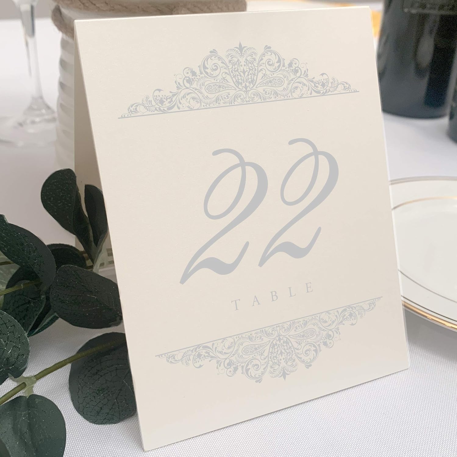 Paisley Wedding Table Numbers (Select Color/Quantity), Champagne, Silver, 1-90, Double Sided, Tent or Use in a Stand, Great for Parties & Restaurants - Made in the USA