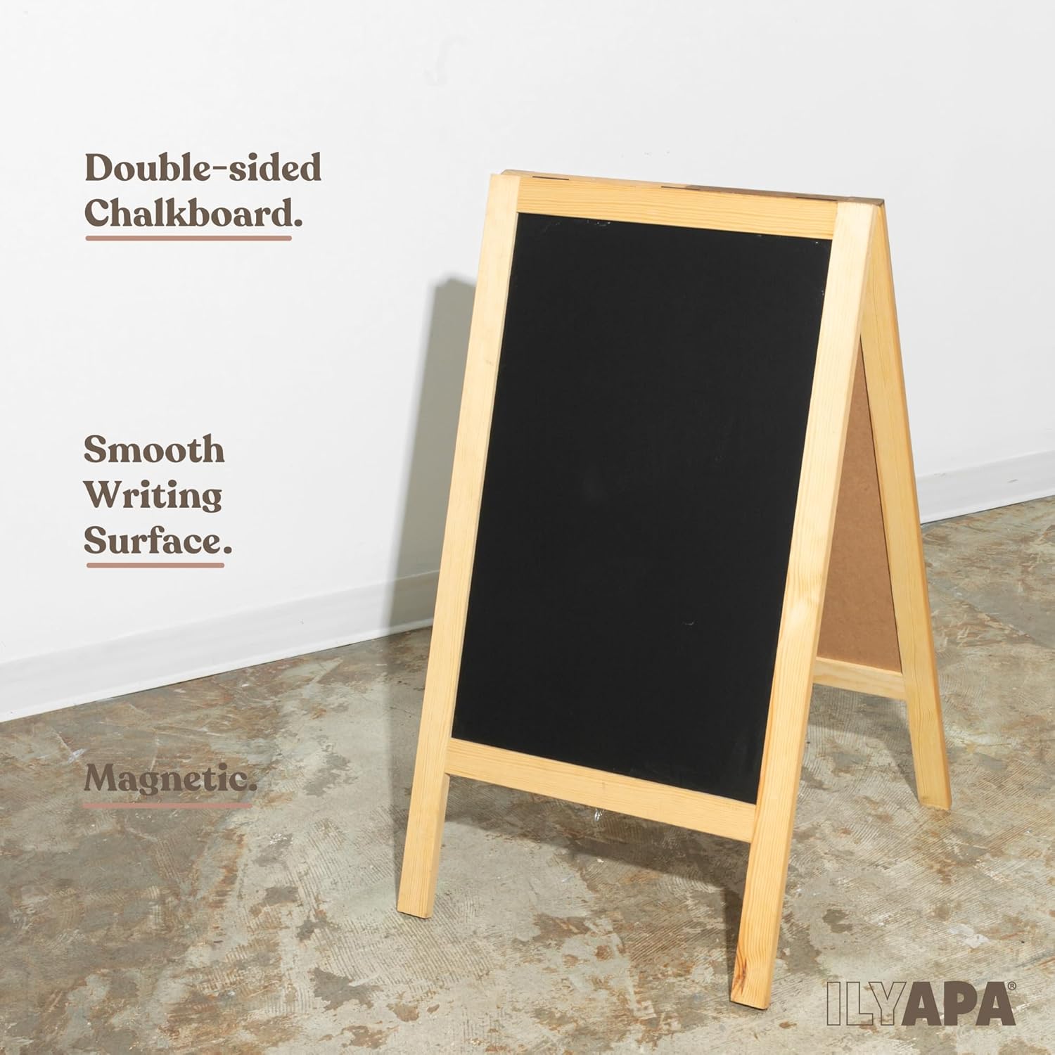 Ilyapa Wooden A-Frame Sign with Eraser & Chalk - 40 x 20 Inches Magnetic Sidewalk Chalkboard – DIY Menu Display for Restaurant, Business Or Wedding