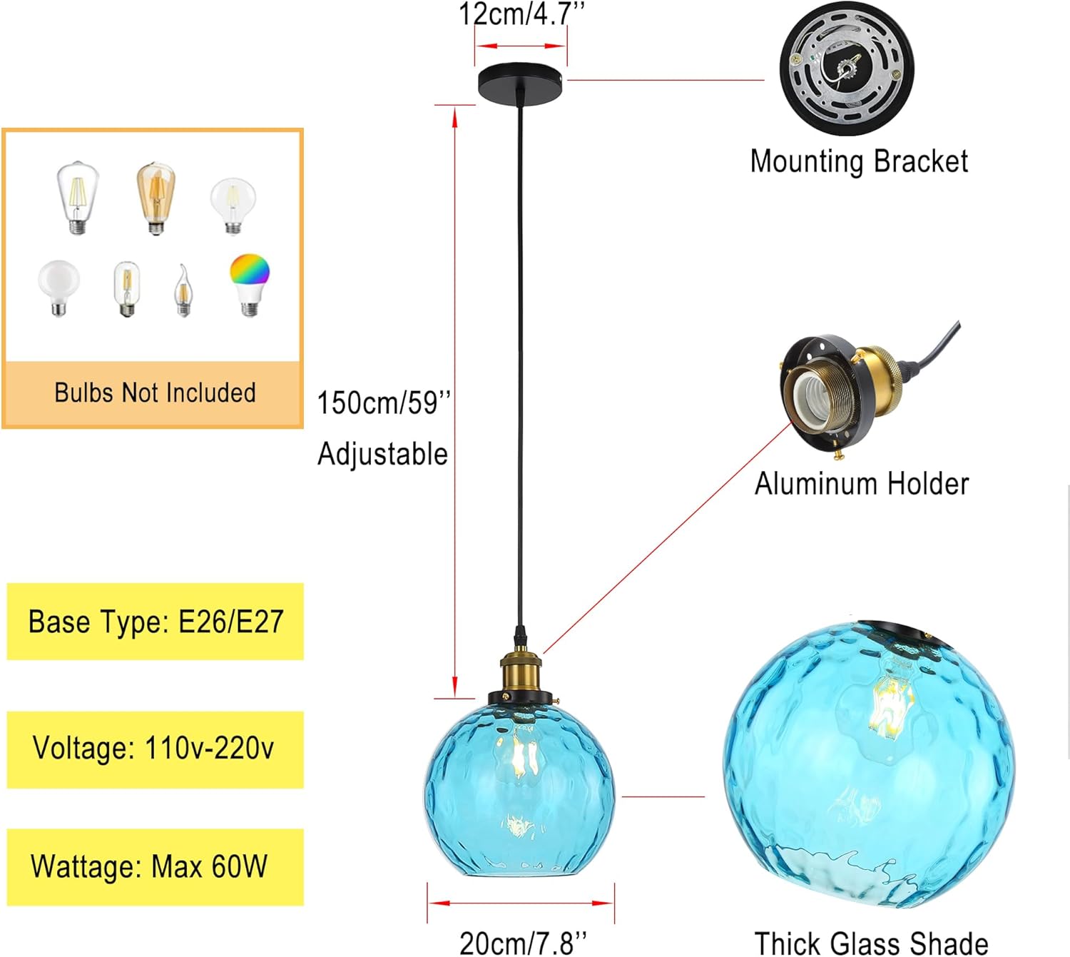 Pendant Light Shade Industrial Hanging Lights Fixtures Ceiling Outdoor Pendant Lighting for Kitchen Island Dining Room Unique Lamp in Kitchen Farmhouse Bedroom (Blue, 7.8 Inches)