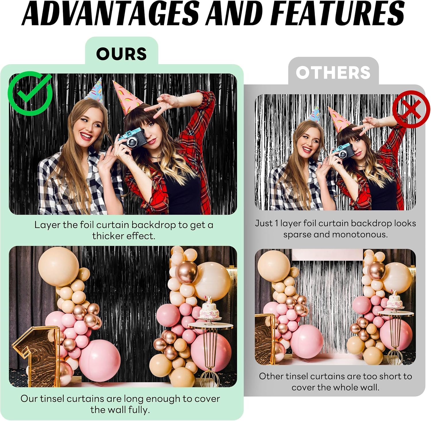 • Material:the foil curtain backdrop is made of tinsel with shiny surface