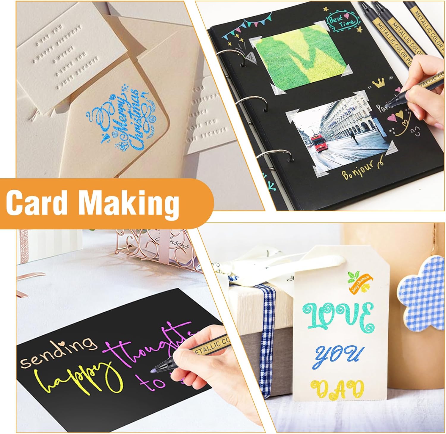 • ★Vibrant Glitter Metallic Pens - 10 vivid metallic colors for choosing. Metallic pens that write on black paper. Acid-free, provides rich, assorted metallic colors. Smooth for drawing or coloring. Adds sparkle embellishment to various craft projects or art work
