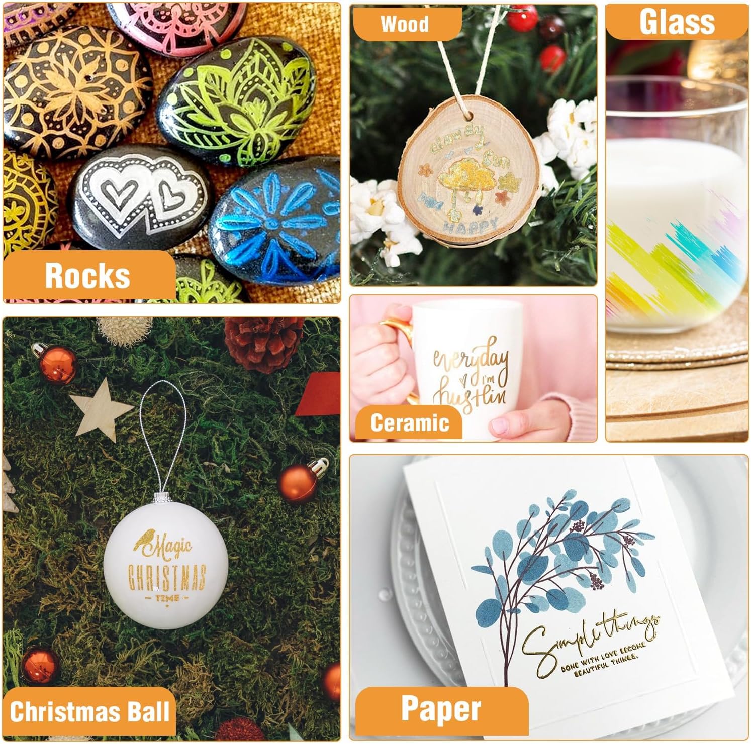 • ★Marks on Most Surfaces - These paint markers ideal for arts and crafts, DIY projects, rocks painting, paint on wood, glass, ceramics, mugs, glass, metal, scrapbooks, crafts, card making, paper crafting supplies and more. Easily mark on light and dark surfaces with the metallic permanent markers