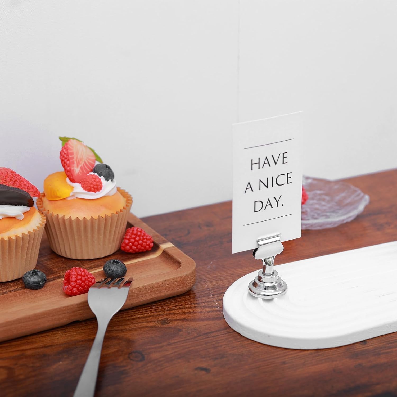 • Heavy and sturdy base: Table number holders have wide, solid and sturdy steel base to keep your cards remain in standing position even if the occasion is in outdoor settings, our finely made table card holders won’t fall over to ruin your elegant presentation