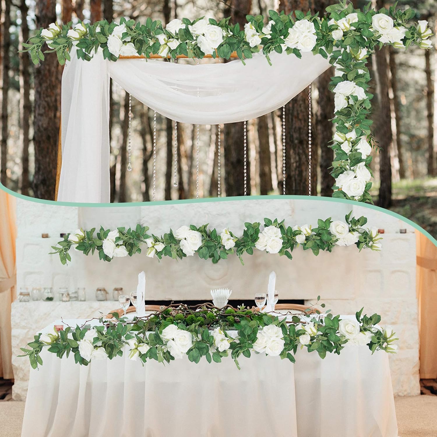U'Artlines 3 Pack Artificial White Rose Vines Floral Garlands Total 19.5 Ft Fake Vine Silk Flower Garland for Indoor Outdoor Home Wedding Arch Garden Wall Decoration