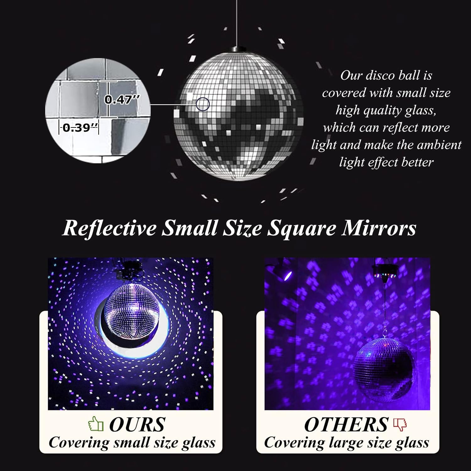 • 2. Measuring 12 inches in diameter, this high-quality disco ball is made with clear mirrors for a flickering effect.