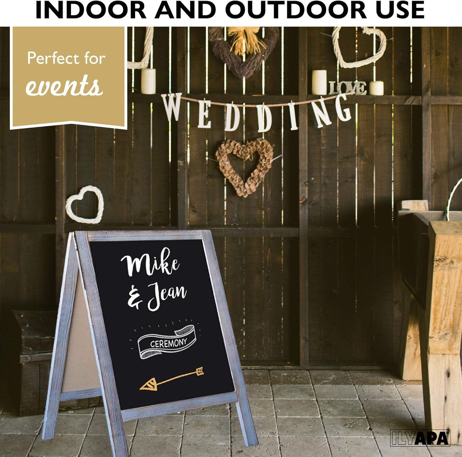 Ilyapa Wooden A-Frame Sign with Eraser & Chalk - 21 x 30 Inches Magnetic Sidewalk Chalkboard – Grey Menu Display for Restaurant, Business or Wedding