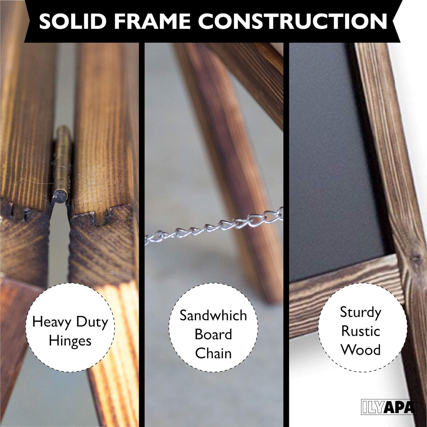 • Built To Last – With a heavy weight wooden frame, sturdy chalkboard surface, and durable design this sandwich board sign will withstand winds and last for years.