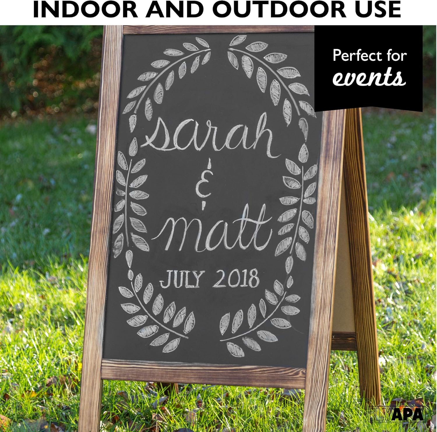 • Includes eraser & chalk – This elegantly crafted wooden a-frame sign comes with a magnetic eraser and four pieces of white chalk for your convenience.